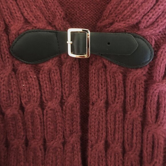 DRESSFO-Women-Size 6-L/Sleeve-Burg,-Buckle Front-Cable Knit Cardigan Sweater-NEW