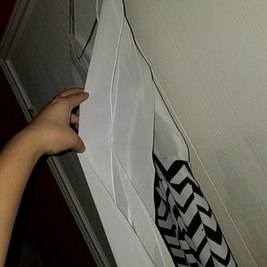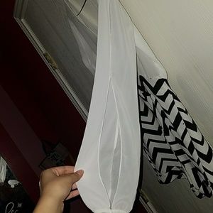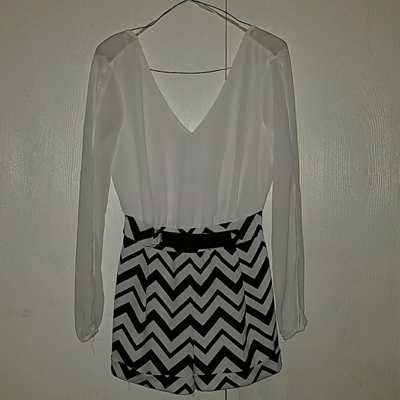 White v-neck top, shorts with black zig zag & gold reflective belt. Both sleeves open up from from the side. In great condition, no flaws, only worn TWICE.