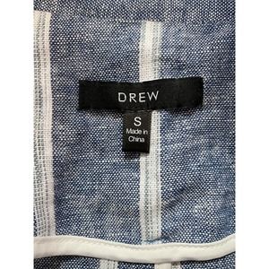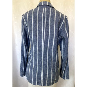 DREW Anthropologie Blue Stripe Linen Blazer Jacket One Button Long Sleev…
