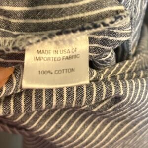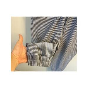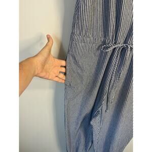 DREW Anthropologie Pin Stripe Blue Ivory Jumpsuit Pockets Criss Cross Back sz. M