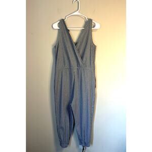 Summer staple jumpsuit. Sleeveless. Criss Crossed back. Draw string waist tie. Side pockets. Elastic band on the ankles. Jogger like jumpsuit. Wear anywhere. Brand by Anthropologie.