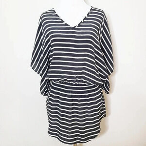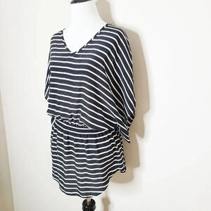 DREW black and white striped 100% Silk Top. Elasticized waist. Excellent preowned condition.