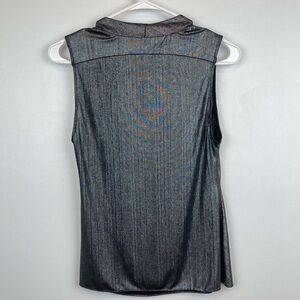 DREW Draped Neck Metallic Gray Sleeveless Top