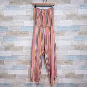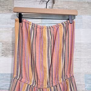 DREW Emerson Linen Tube Jumpsuit Striped Strapless Tulip Slit Leg Womens Small