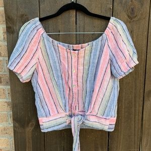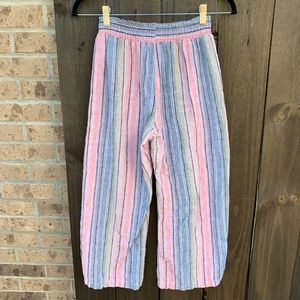 ❤️DREW Multicolored Pastel Stripe Button/Tie Front Top/Wide Leg Cropped Pants Matching Set. Very sought after! This is a killer deal for this set!