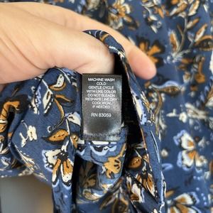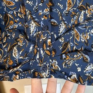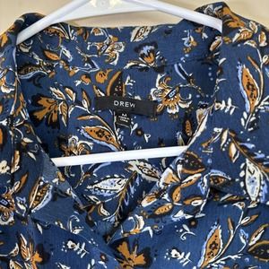 DREW MS NAVY BLUE FLORAL PRINT BUTTON FRONT LONG SLEEVE JACKET / BLOUSE MED