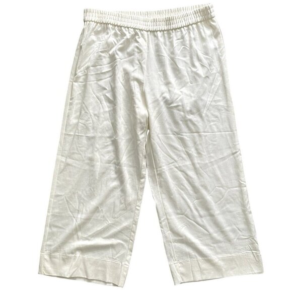 DREW Nylon Rayon Wide Leg Pant Womens Sz L Ivory Chic Pull On Beach Boho Minimal