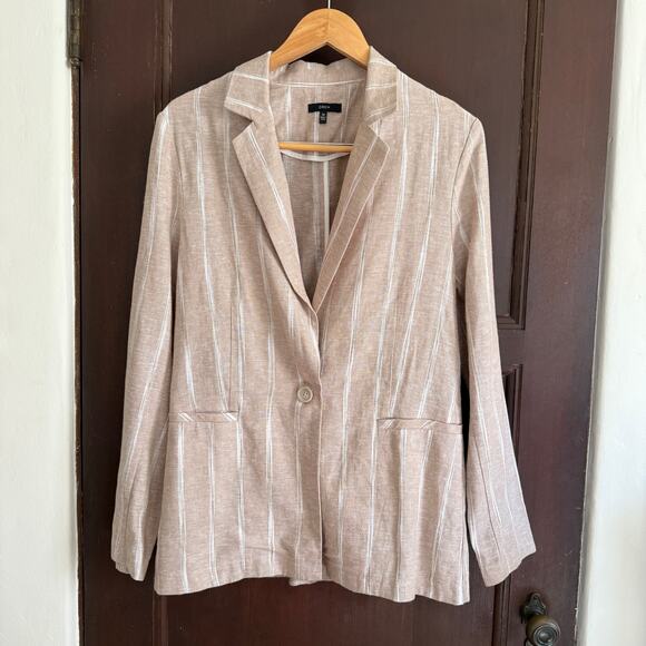DREW | Striped Natural Khaki Linen Blend Relaxed Blazer Anthropologie | Medium