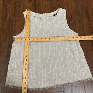 DREW Tank Top Womens S Sand Beige Burlap Striped Sleeveless Fringed Linen Blend W10286