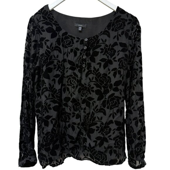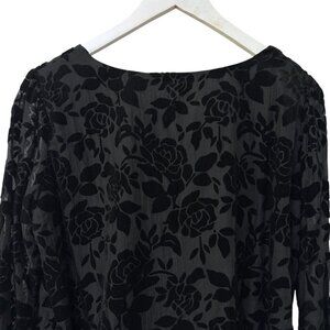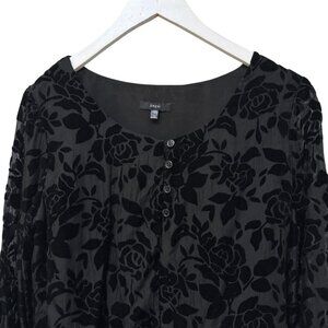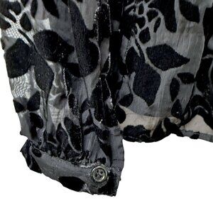 DREW Womens Top Size Small Black Burnout Velvet Blouse Long Sleeve