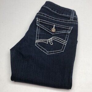 2899 EXCELLENT CONDITION !! PREMIUM CONSTRUCTION DESIGNER DENIM !! DECORATIVE EMBROIDERY ON BACK POCKETS !! CLASSIC 5-POCKET STYLE !! CONTRASTED DOUBLE STITCHING !! NOT ALTERED !! 7.5" MIDRISE !! PREMIUM QUALITY DENIM and CLASSIC BOOTLEGGER fit and style ⭐️
