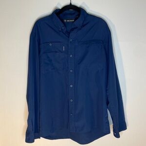 Excellent condition. 100% polyester. Quick dry. Navy blue. Long sleeve.