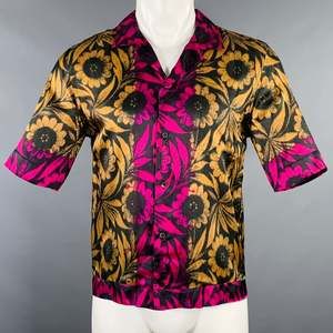 DRIES VAN NOTEN Beige Fuchsia Pink Floral One Pocket Short Sleeve Shirt