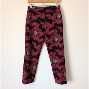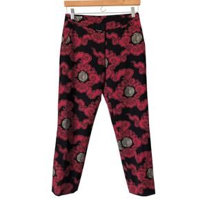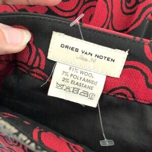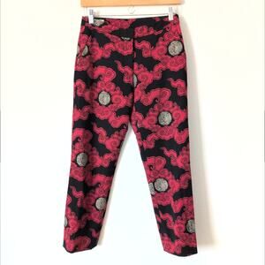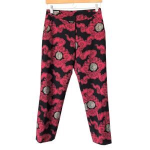 Dries Van Noten size 34 91% wool 7% palmide 2% elastane made in Portugal women's dress pants straight leg high-rise black, red -japanese, asian style print