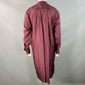 DRIES VAN NOTEN dress in a purple silk featuring a tunic style, pleated details with beaded panel, and hidden placket closure.
