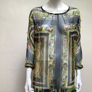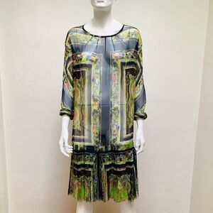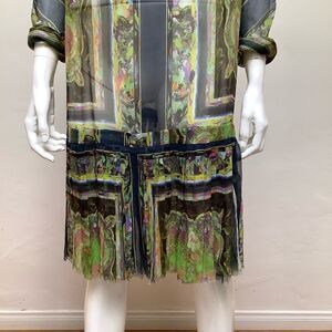 DRIES VAN NOTEN SHEER WATERCOLOR LONG SLEEVE PRINTED DRESS SIZE 38