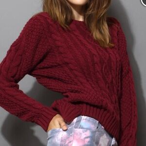 Boyfriend sweater, boho, cable knit, merlot wine color, boxy, oversized, fisherman, vacation, cottagecore, outdorsey, sailing, outdoor, travel