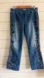 Chic blue jeans with detailed embroidery. Flare design for a stylish look. These are just pull up jeans with great stretch. Worn 1-2 times so practically new! Measure 15.5 inches in the waist; rise is 10.5; inseam is 28.5 and length is 38.
