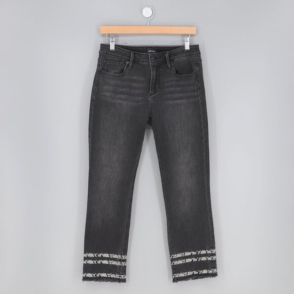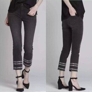 DRIFTWOOD Colette Straight Crop Jean Snake Print Dark Wash Raw Hem Size 28
