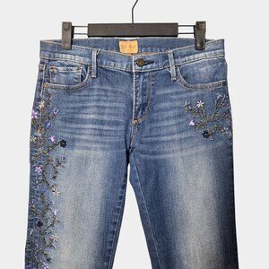 DRIFTWOOD Eva Classic Fit Bootcut Floral Embroidered Jeans 26 Boho Streetwear