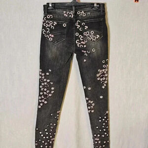 DRIFTWOOD JACKIE Cherry Blossom Embroidered Black Stretch Denim Jeans Sz 26