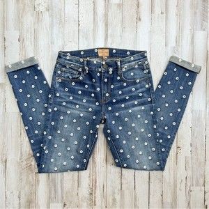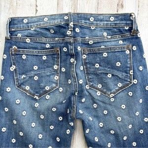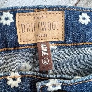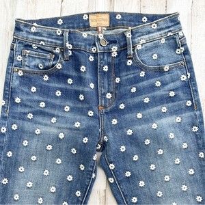 DRIFTWOOD Jackie Daisy Floral Embroidered Denim Blue Jeans Anthropologie 25