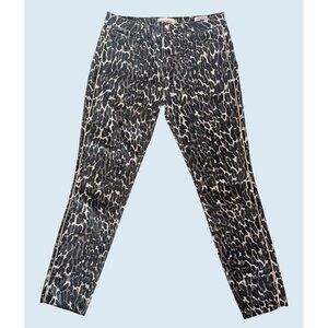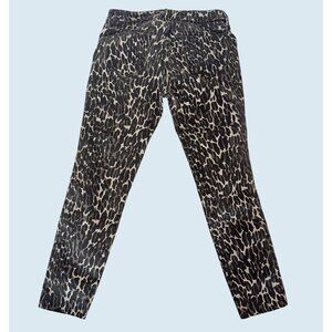 Nice pair of jeans by Driftwood. Allover animal print in grey tones. Skinny fit. Mid rise. Gold piping down the leg sides. Zip / button closure. Stretch fabric. Faux front pockets. Rear pockets. Raw hem. 88% cotton / 10% polyester / 2% spandex. Size 29. Pre-owned and gently worn in really nice condition!