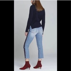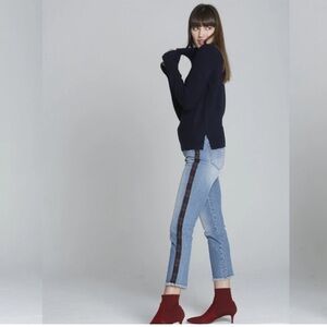 These jeans are a total 90’s style with a red plaid stripe running down the leg
