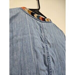 Embrace a carefree and bohemian vibe with this NEW DRIFTWOOD SHAYE DENIM DITZY GARDEN TENCEL DRESS BOHO. The denim blue color and mini dress style exude a casual yet flirty look, making it perfect for any occasion. The dress is sleeveless with a short length, providing comfort and ease of movement. The dress is made of high-quality Tencel fabric that feels soft and gentle to the skin. This dress is perfect for women who love to look stylish and comfortable at the same time.
