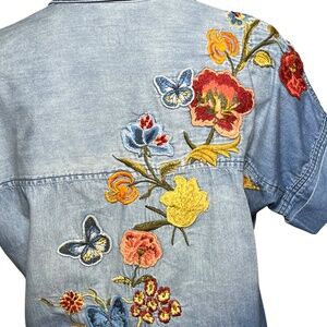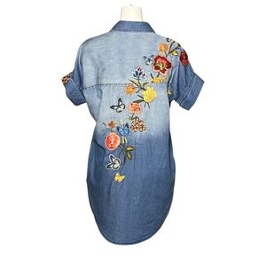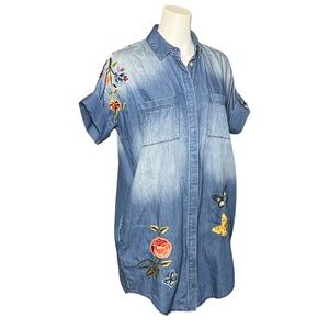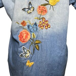 DRIFTWOOD Size Large Butterfly Floral Embroidered Chambray Mabel Shirt Dress