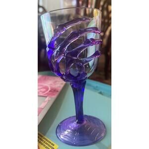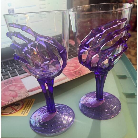 DRINKING GLASSES RESIN Lot Of 2 Purple Skeleton Hand Resin Wine Glasses