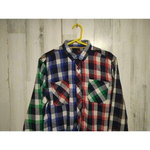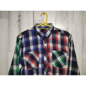 DRL Essentials By Drill Flannel Shirt Mens Large Blue Green Colorblock Casual
