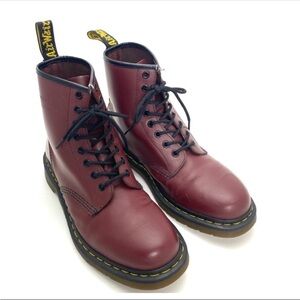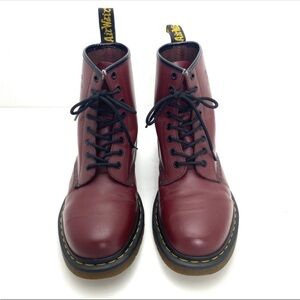 DR.MARTENS 8 Eyes Lace Up Moto Boot in Cherry Red Style 11822 Size Women 10