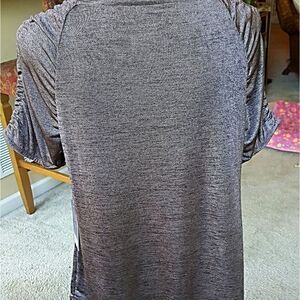 Belted or not, this metallic top is understated & on trend. Paired w/ a skirt, capris or jeggings, it says you're confident. Stylish, sassy & sophisticated. Measures 34" in length. NWT.