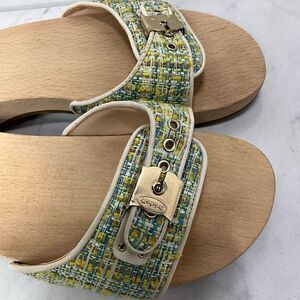 Women’s Dr. Scholl’s Original Collection Wooden slip on sandals with 1 1/2” heel, contour footbed, round toe and rubber sole. EUC Size 10