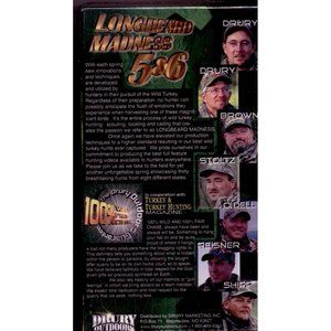 Listed here is a DOUBLE-VHS SET OF DRURY OUTDOORS LONGBEARD MADNESS VOL 5 & 6 WILD TURKEY HUNTING! 30 HUNTS FROM 8 STATES WITH HARDCORE INFO. Participants include Drury, Drury, Brown, Stoltz, O'Dell, Resiner, and Shipp. ©2003 COLOR Over 150 minutes!
