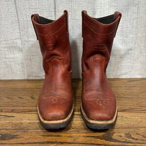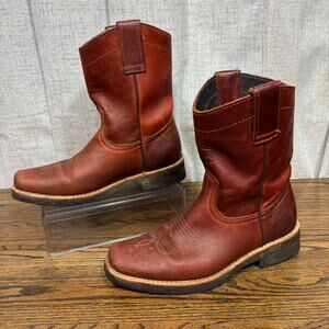 D’Rogeri Men’s 7.5 Brown Leather Square Toe Pull-On Western Work Boots Mexico