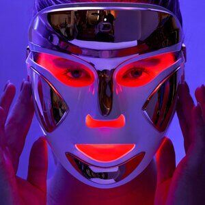 From clinic to counter, this professional-grade, FDA-cleared LED device for the face targets wrinkles and acne for visibly smoother, clearer skin in just 3 minutes. It features a combination of up to 100 lights that can emit red or blue wavelengths to help boost collagen, fight acne, improve skin density, smooth wrinkles, and diminish dark spots for a younger-looking complexion – no doctor's appointment needed. Treat acne and breakouts with blue light, smooth wrinkles and build collagen with red light, or address both acne and aging using both lights at the same time – all in 1 easy-to-use full-face design you can wear on its own.