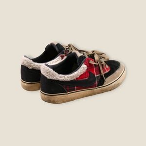 The DS Nike SB Zoom Air Harbor Khaki/Black/Red Plaid Todd Jordan Size 8.5 316049-201 is a vintage men's athletic sneaker released in 2007. Featuring a low top shaft style, standard shoe width, and made with nubuck upper material, this Nike Zoom Air Harbor model showcases a colorful red plaid pattern. With a size 8.5 US and 7.5 UK, this shoe is part of the Nike SB product line and manufactured in Thailand. Perfect for those looking for a unique and stylish addition to their sneaker collection.