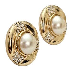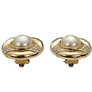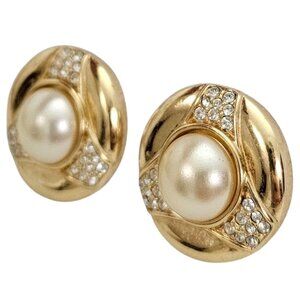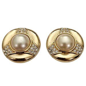D.S.Co. Daniel Swarovski Clip Earrings Clear Crystal Gold Tone Faux Pearl Signed