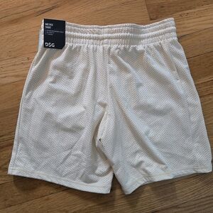Elevate your workout with DSG's cream athletic shorts, designed for optimal performance. Crafted from a lightweight, breathable fabric, these shorts feature an elastic waistband and side slits for enhanced mobility. Perfect for any athletic activity, they offer a versatile and stylish addition to your sportswear collection.