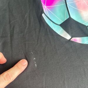 This DSG short sleeve athletic tee features a cool graphic soccer ball with pastel tones on a black background. Lightweight, stretchy, and comfortable—perfect for practice, PE, or casual wear.
