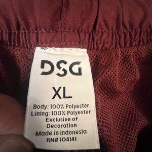 DSG Mens XL Burgundy Polyester Athletic Shorts With Drawstring Waist & Pockets
