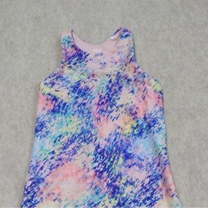 Stylish top with abstract multicolor design. Features sleeveless cut. Ideal for a trendy outfit.