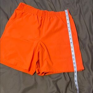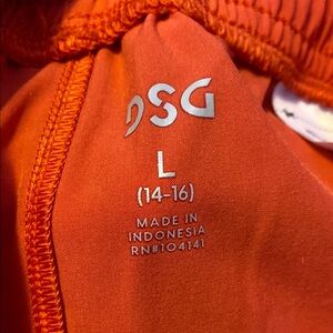 These DSG shorts in an orange hue offer a comfortable and relaxed fit, perfect for athletic or casual wear. Crafted from a lightweight fabric, they feature an elastic waistband for easy wear and a classic design that complements any active lifestyle.