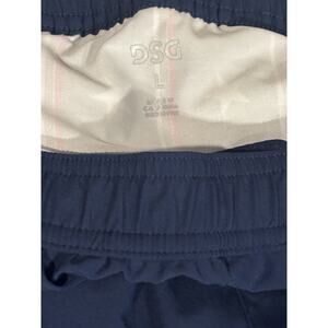 The DSG Shorts for men in size Large are designed for athletic activities, featuring a navy blue color with an American flag theme. These shorts are lined for added comfort and have pockets for convenience. With a 5-inch inseam, they provide a comfortable fit for active men looking for stylish and functional activewear. Perfect for workouts or training sessions, these shorts are both practical and patriotic in design. New with tags.