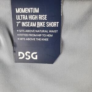 New DSG Women's XL Momentum Ultra High Rise Bike Short 7" Gray (Wet Cement). Approximate measurements, waist 34in, rise 12in, inseam 7in.