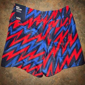 DSG Youth Athletic Fit Train Shorts, XS, Red & Blue Zigzag Pattern
