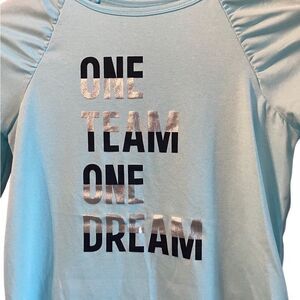 DSG One Team One Dream Graphic Long Sleeve Workout Tee Girls M/10-12 Light Blue