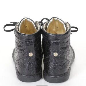 DSQUARED2 Black Croc-Embossed High-Top Sneakers. Italian leather. EU 38